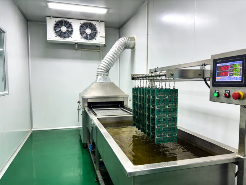 白色墻面采用高潔凈抗菌涂層,推行無縫拼接工藝,陰陽角采用圓弧倒角設計,消除清潔死角,減少粉塵堆積。車間科學劃分蝕刻區、焊接區、檢測區等功能區域,各區域均配備防靜電接地系統與精密通風裝置,蝕刻區預留廢液收集管線接口,檢測區預留高精度儀器安裝位,全方位保障電路板生產的精準性與安全性。