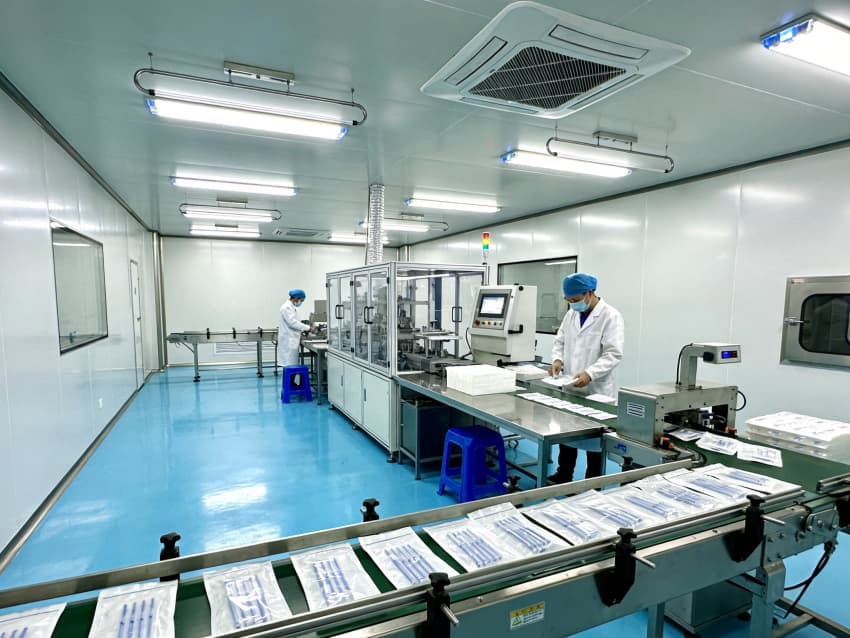白色墻面采用食品級潔凈抗菌涂層,推行無縫拼接與高精度找直工藝,陰陽角采用R50圓弧倒角設(shè)計,徹底消除清潔死角,潔凈度穩(wěn)定達(dá)到Class 7級標(biāo)準(zhǔn)。廠房科學(xué)劃分無菌裝配區(qū)、滅菌區(qū)、檢測區(qū)等核心區(qū)域,各區(qū)域配備獨立層流凈化與負(fù)壓防護(hù)系統(tǒng),裝配區(qū)預(yù)留恒溫恒濕調(diào)控接口,滅菌區(qū)設(shè)置專用物料傳遞通道,全方位保障生產(chǎn)全流程的無菌性與合規(guī)性,為高品質(zhì)無菌醫(yī)療器械生產(chǎn)筑牢環(huán)境基礎(chǔ)。